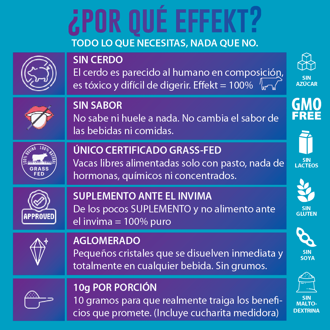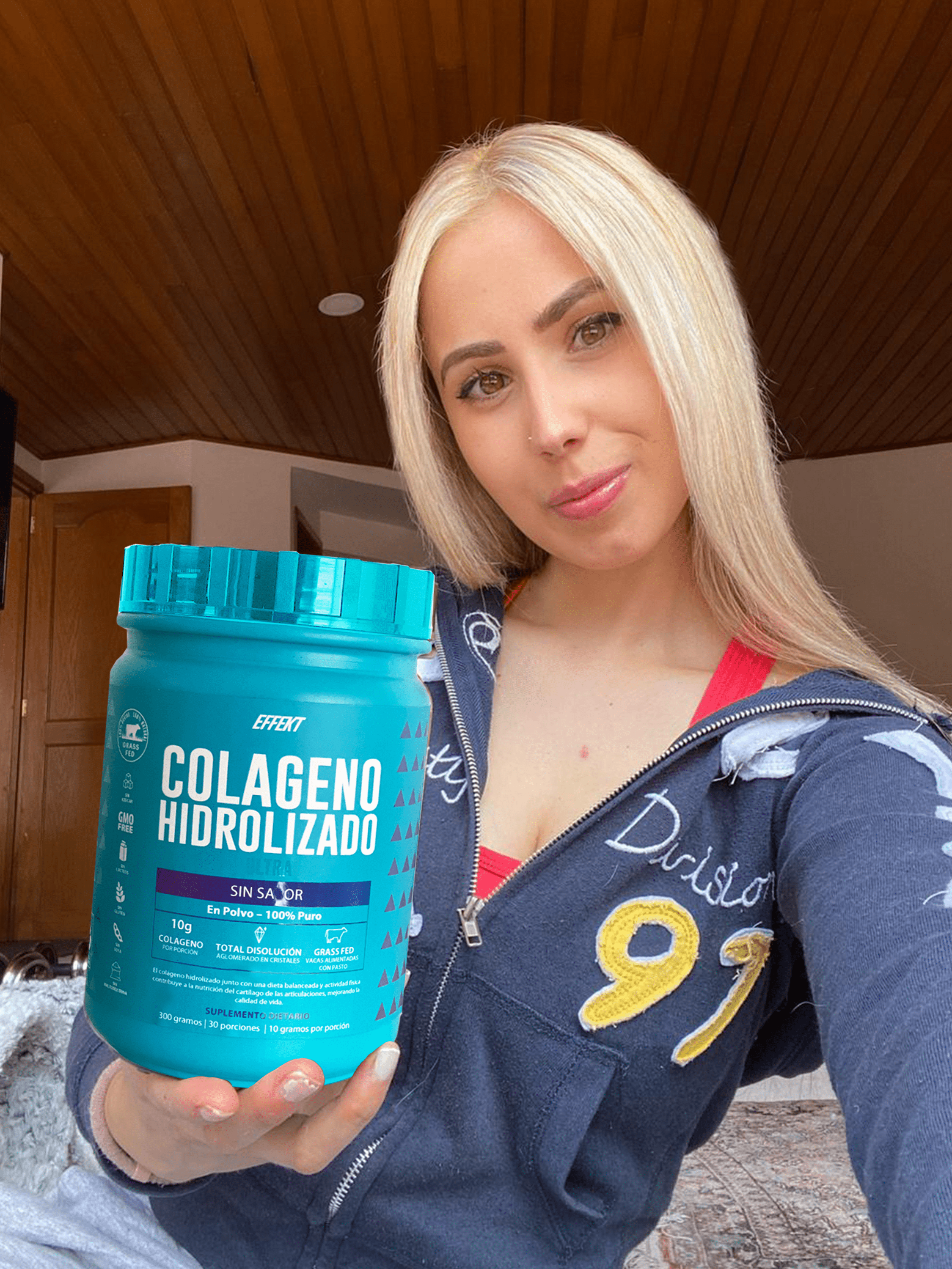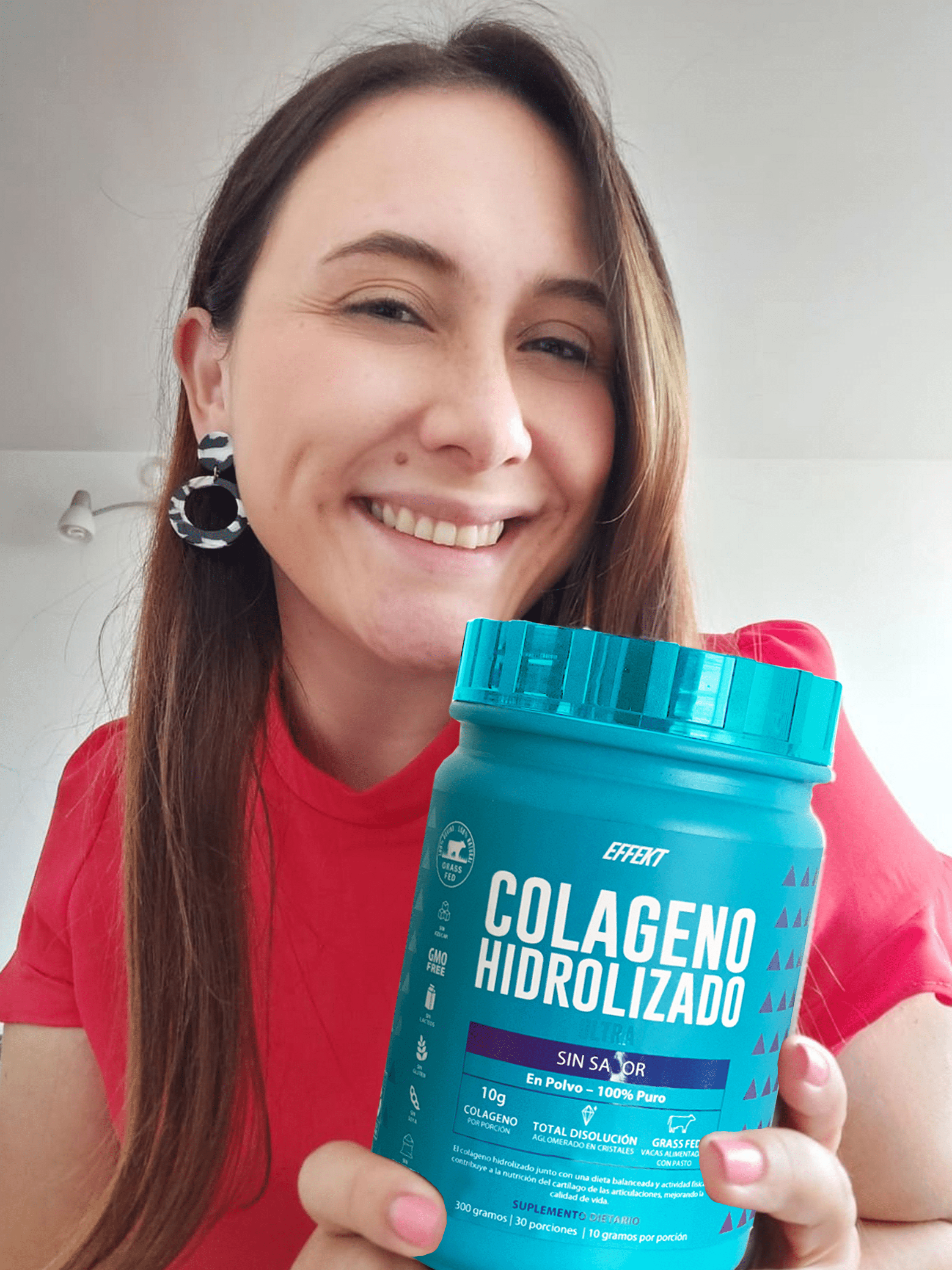 "El colágeno de Effekt es impecable, por eso lo consumo. La forma correcta de tomarlo es libre de azúcares, sabores artificiales, carbohidratos, gluten, lácteos. Este es el único colágeno que logró recuperar mi pelo después de pintarmelo, se me dejó de caer y lo tengo largo y sano! Lo amo!"